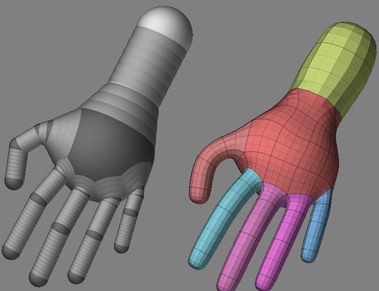 also ich habe die "handflaeche" mit dem move tool lang gezogen und dann kamen solche falten gibt es eine moeglichkeit wenn ich jetzt eine zshpere erstelle als handflaeche die mit den anderen "5" zu verbinden ???